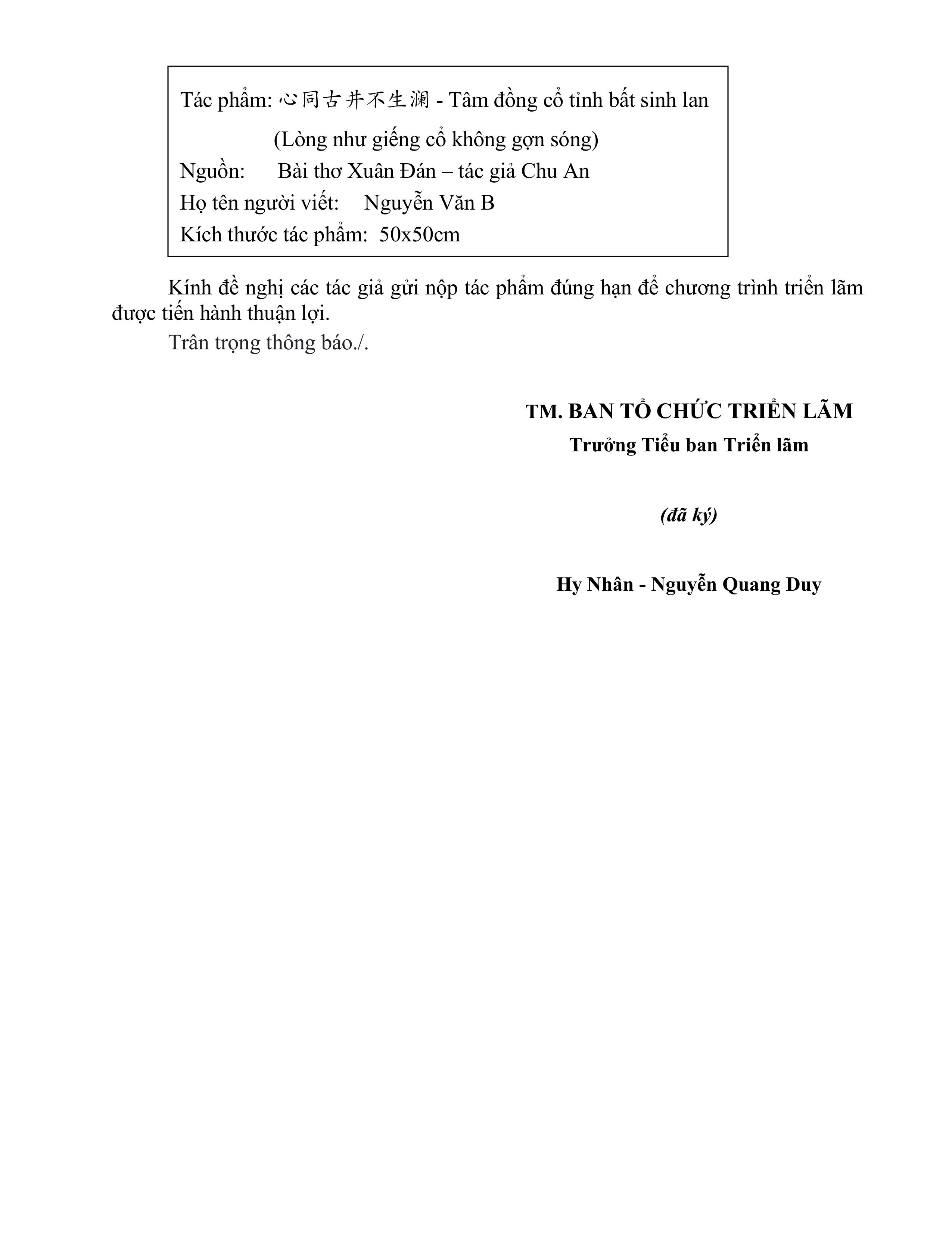 THÔNG BÁO GỬI NỘP TÁC PHẨM TRIỂN LÃM HÀN MẶC LẦN THỨ 13