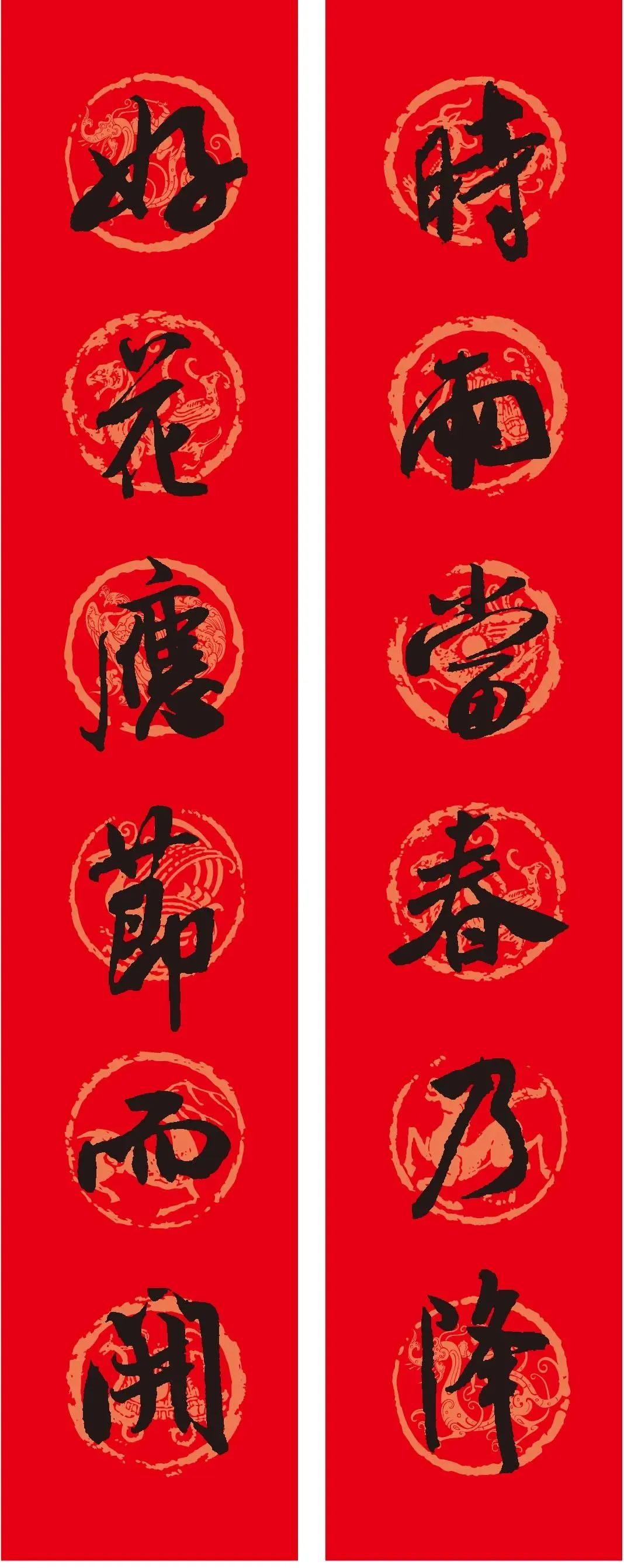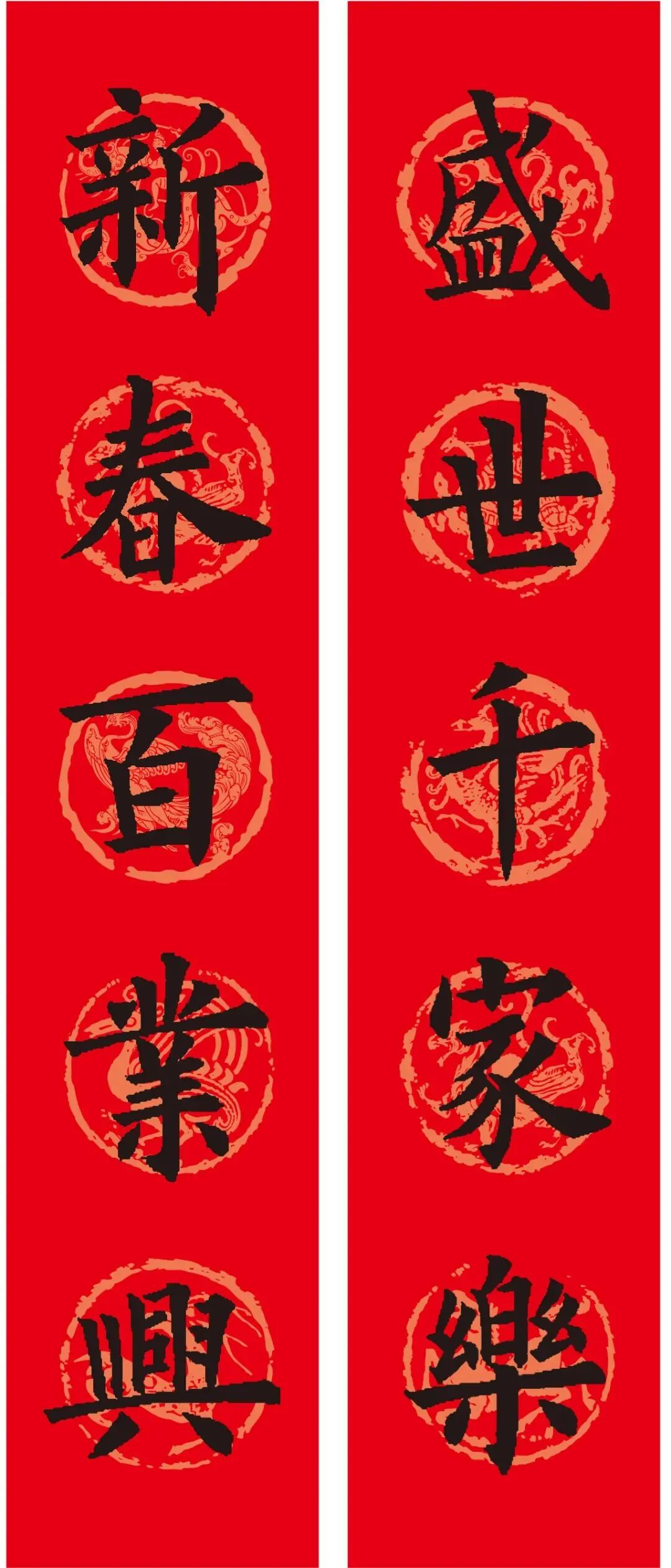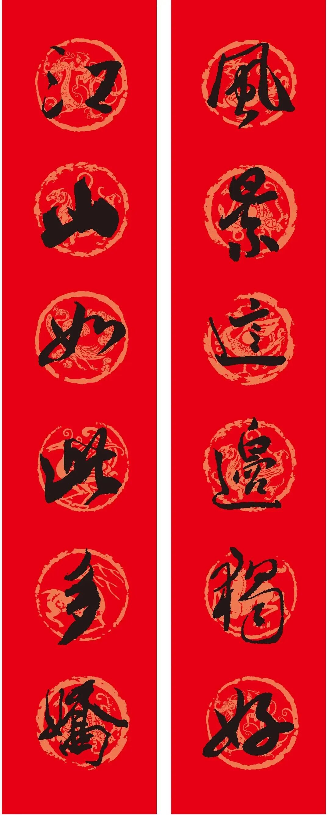 xuân nghênh phúc tiền trình tự cẩm bách nghiệp hưng; miêu tống tài cát địa phát đạt vạn sự thuận